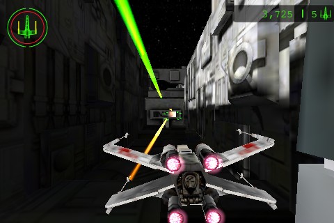 La jouabilité du jeu reste correcte, grâce à l’accéléromètre, qui vous permettra de faire évoluer votre X-Wing dans la tranchée avant de balancer vos bombes à protons.